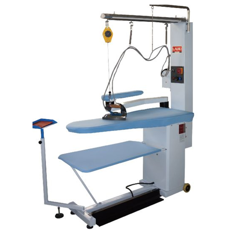 产品详情 简要说明: l 自带吸风吹风喷汽功能。 l 自带照明、熨斗及台面加热功能。 l 控制系统实用美观。 l 熨斗、喷枪、电磁阀、温控等均为进口。 l 双工作位,左、右手均方便熨烫,工作台面可定制。 主要技术参数:
