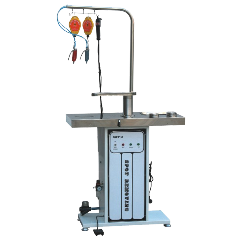 产品详情 用途及特点: l 针对各类成衣受到污渍清除所设计。 l 抽风点动式控制开关,运行时节省电力,降低噪音。 l 一支蒸汽枪,两支强劲的去污喷枪,可清除衣物上的污渍。 l 两个不锈钢容器,可装不同的去污剂。 l 内设蒸汽储气装置。 主要技术参数: