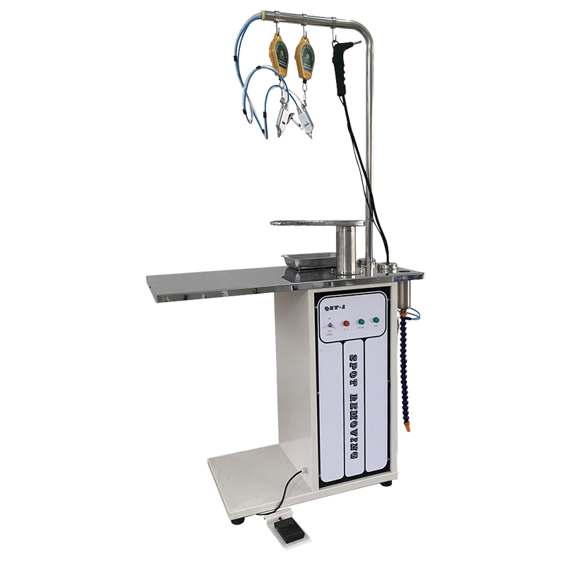 产品详情 用途及特点 l 针对各类成衣受到污渍清除所设计。 l 抽风点动式控制开关,运行时节省电力,降低噪音。 l 一支蒸汽枪,两支强劲的去污喷枪,可清除衣物上的污渍。 l 两个不锈钢容器,可装不同的去污剂。 主要技术参数:
