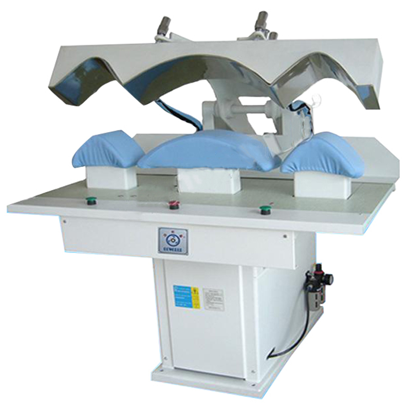 产品详情 主要说明: 1、布草脱水后可直接熨烫。 2、采用优质气动元件及合理的气路设计,全压缩空气控制压烫工作,无需外接电源,工作稳定可靠安全。 3、6mm不锈钢抛光工作面,汽室结构合理,压烫吻合度好,保证熨烫品质。 4、汽路设计简明有效,升温快,热损耗低。 5、可根据客户特殊要求定制。 主要技术参数: